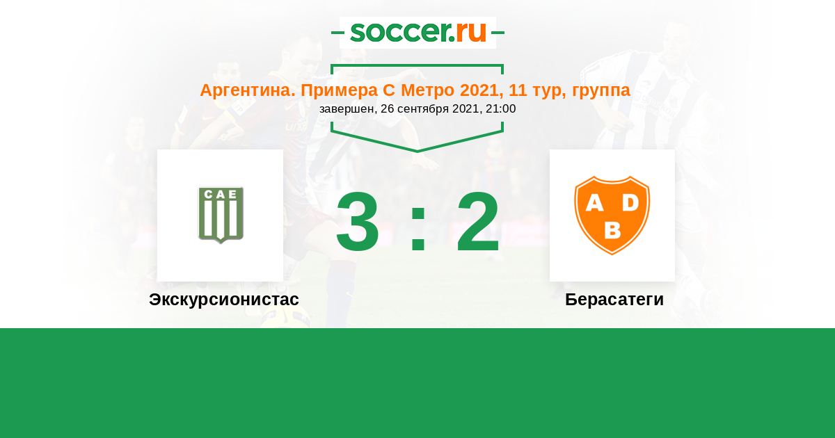 Аргентина. Примера С Метро 08.09.2012 Экскурсионистас Логотип футбольный клуб Экскурсионистас (Буэнос-Айрес) 2:2 Логотип футбольный клуб Берасатеги (Буэнос-Айрес) Берасатеги