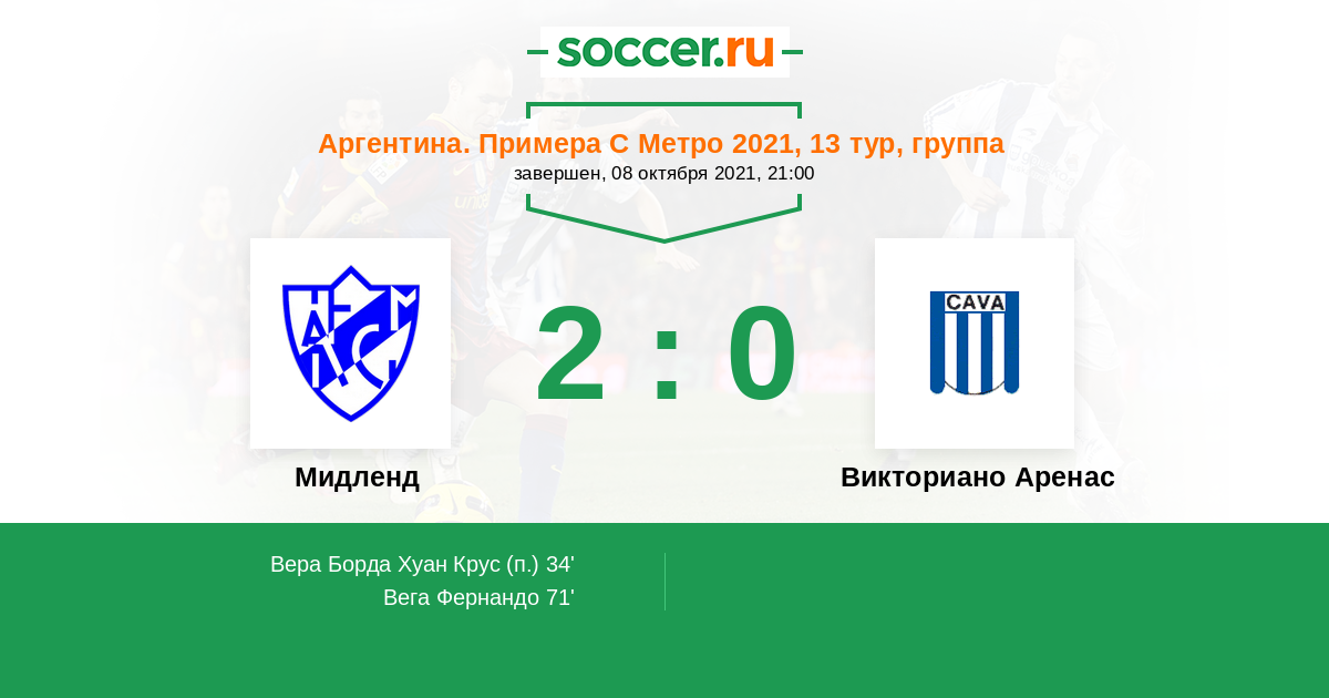Протокол матча Мидленд против Викториано Аренас