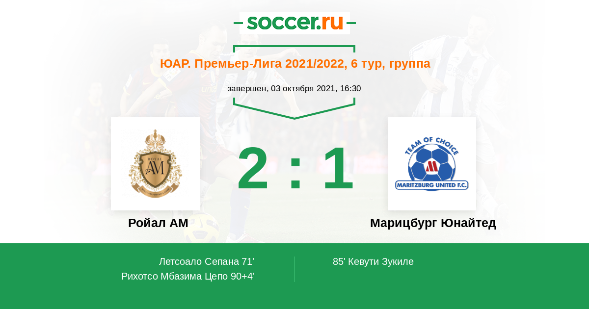 Протокол матча Ройал АМ против Марицбург Юнайтед
