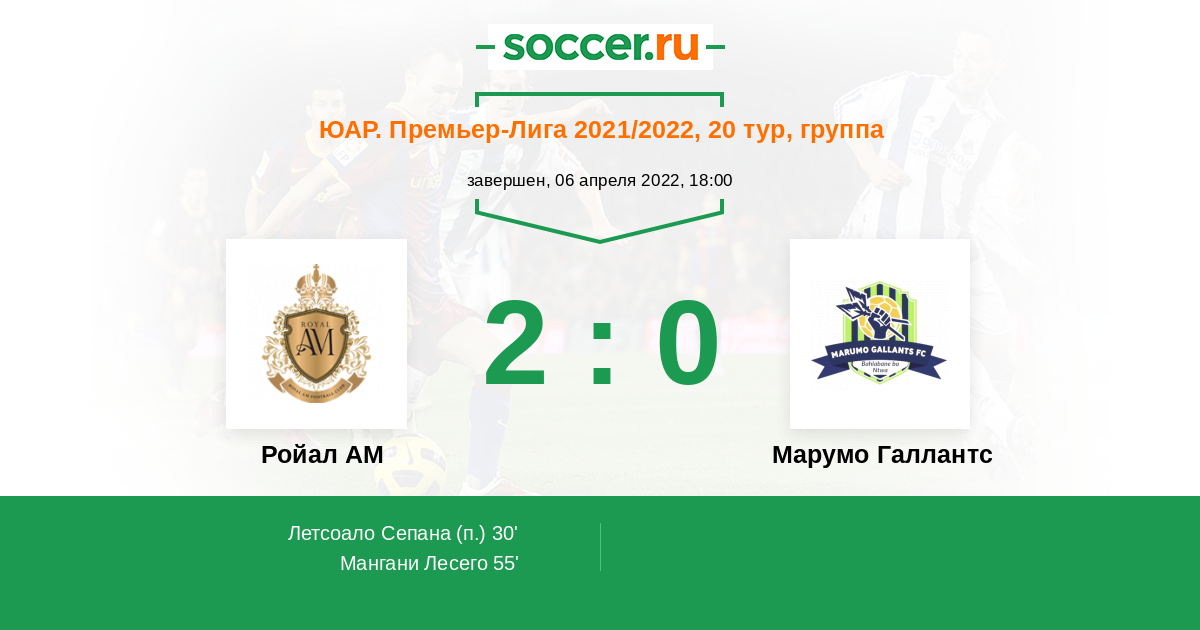 55' (2:0) Мангани Лесего (13) (Мабена Ндумисо (10))