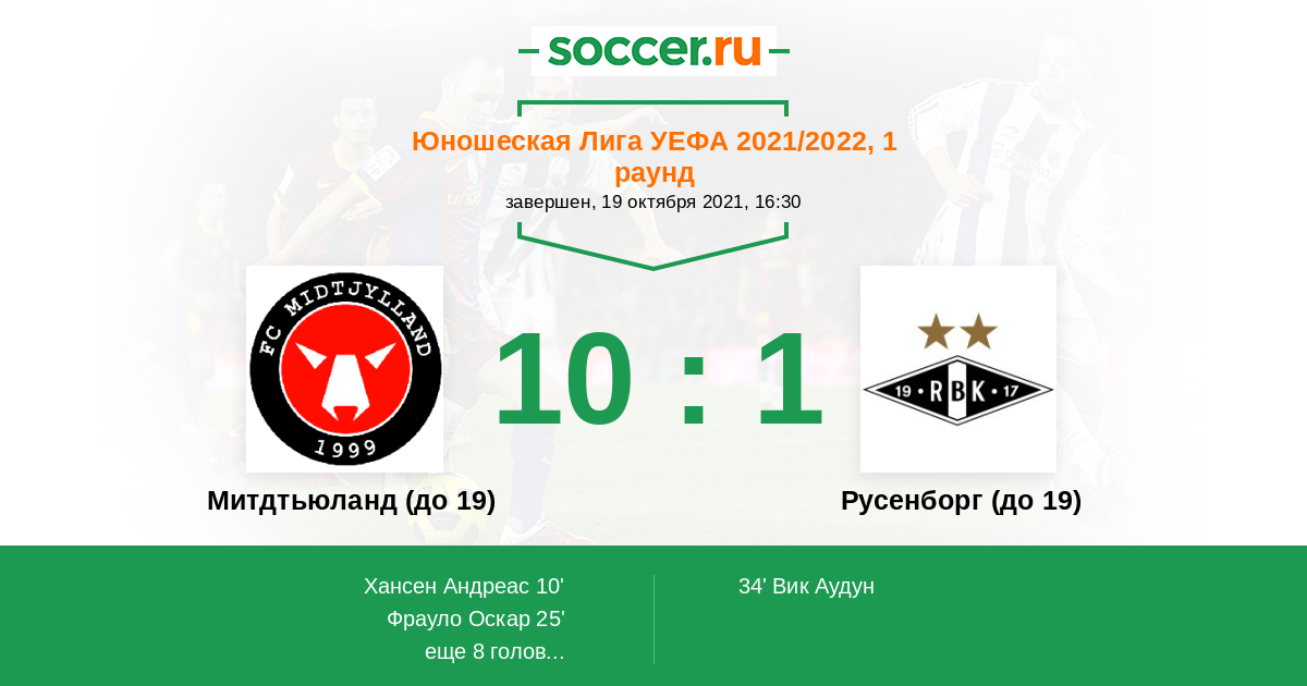 Протокол матча Митдтьюланд (до 19) против Русенборг (до 19)