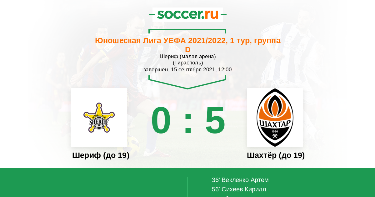 Протокол матча Шериф (до 19) против Шахтёр (до 19)