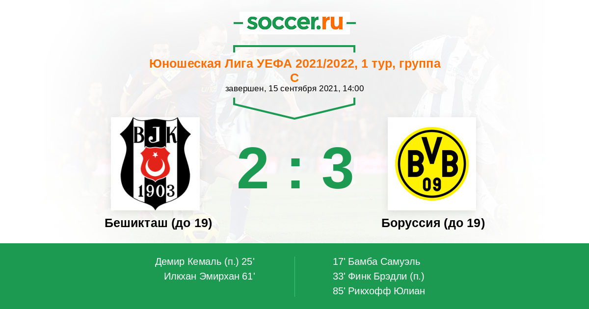 Протокол матча Бешикташ (до 19) против Боруссия (до 19)