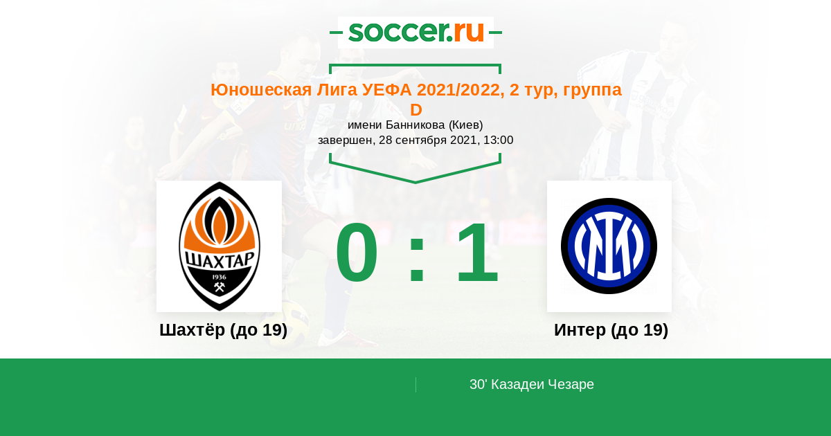 Протокол матча Шахтёр (до 19) против Интер (до 19)
