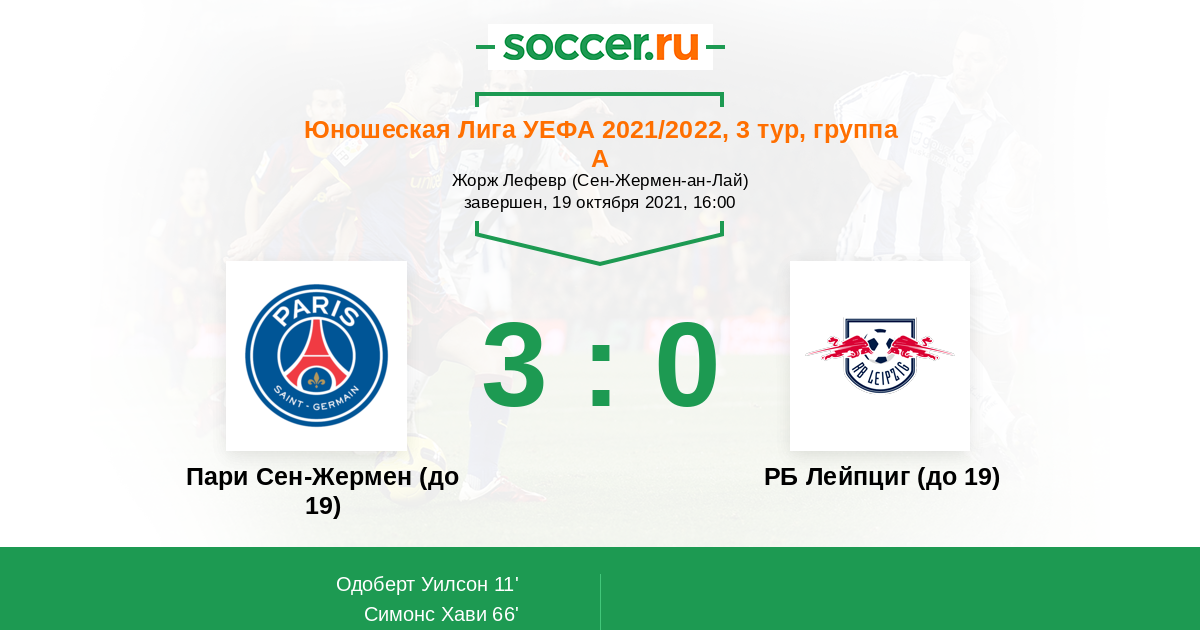 Протокол матча Пари Сен-Жермен (до 19) против РБ Лейпциг (до 19)