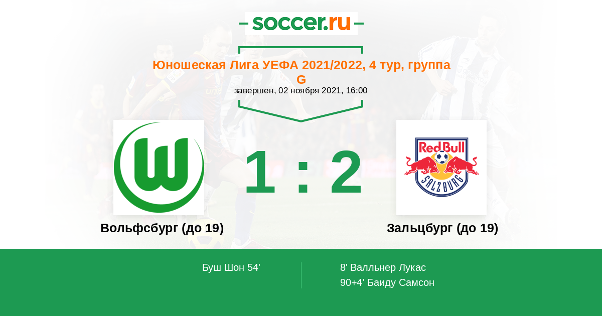 Протокол матча Вольфсбург (до 19) против Зальцбург (до 19)