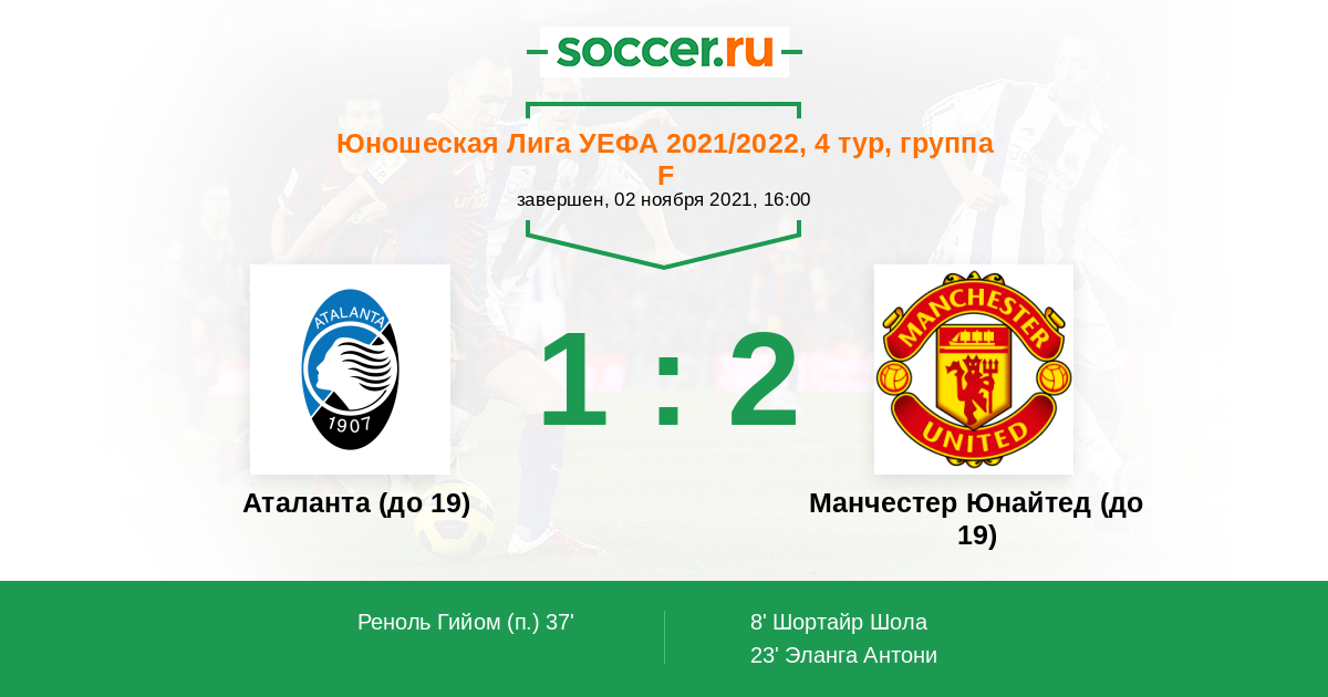 Протокол матча Аталанта (до 19) против Манчестер Юнайтед (до 19)