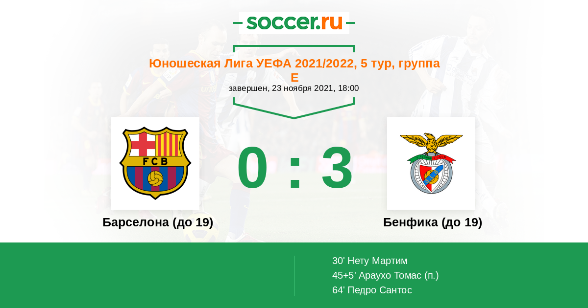 Протокол матча Барселона (до 19) против Бенфика (до 19)