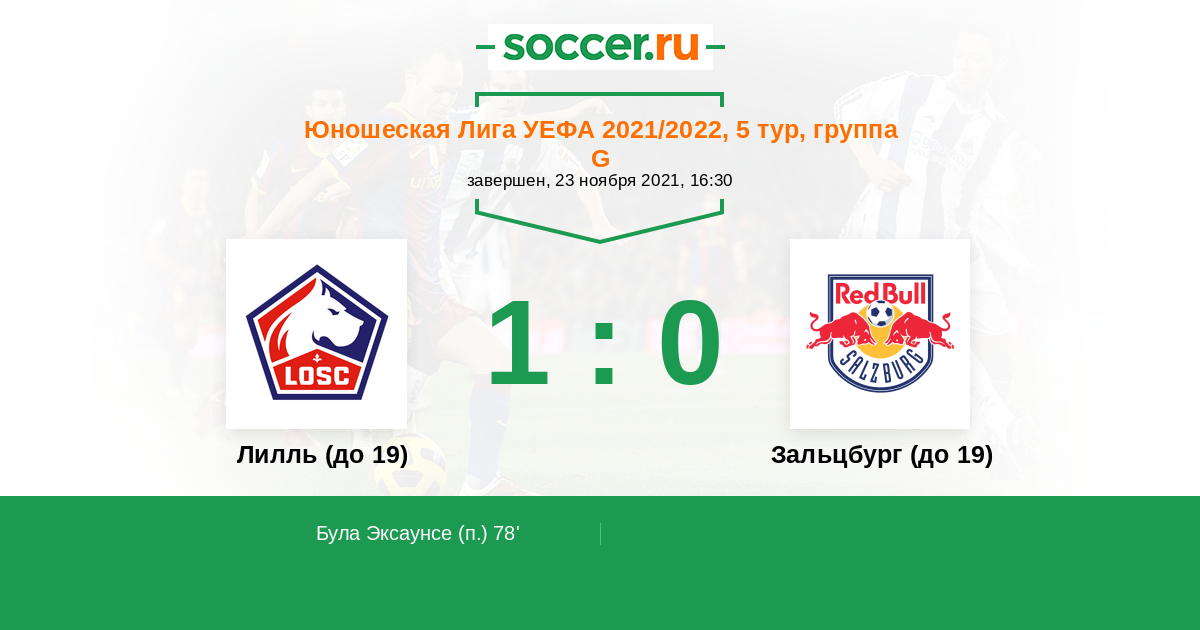 Протокол матча Лилль (до 19) против Зальцбург (до 19)