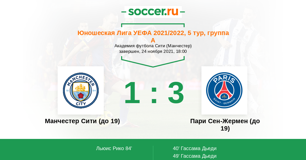 Протокол матча Манчестер Сити (до 19) против Пари Сен-Жермен (до 19)