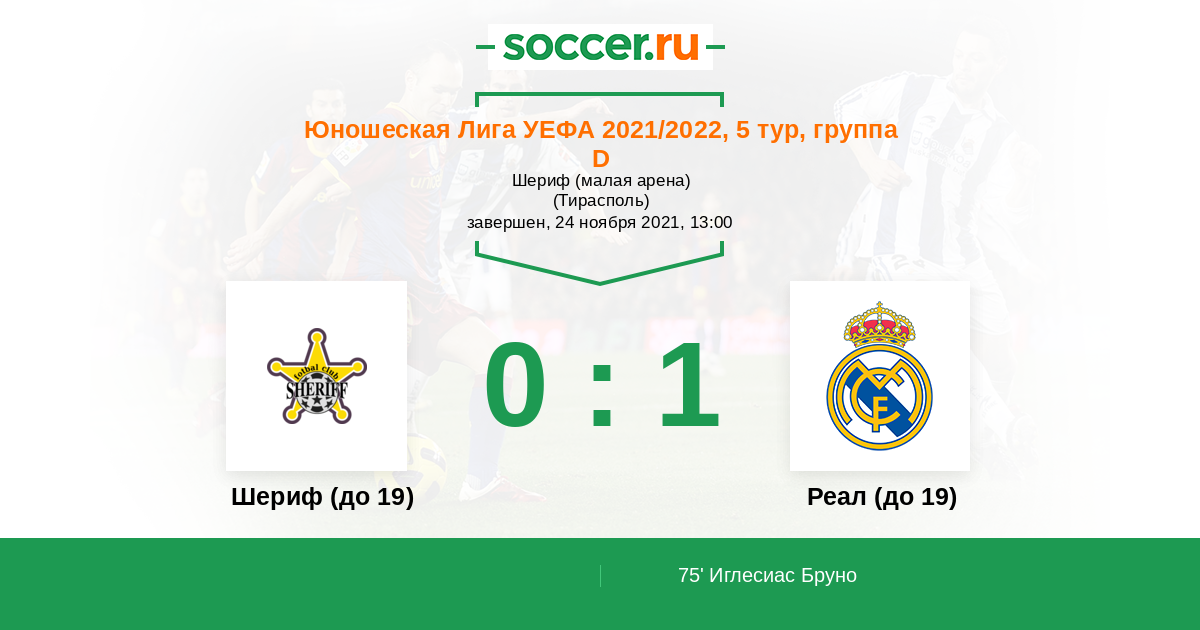 Протокол матча Шериф (до 19) против Реал (до 19)