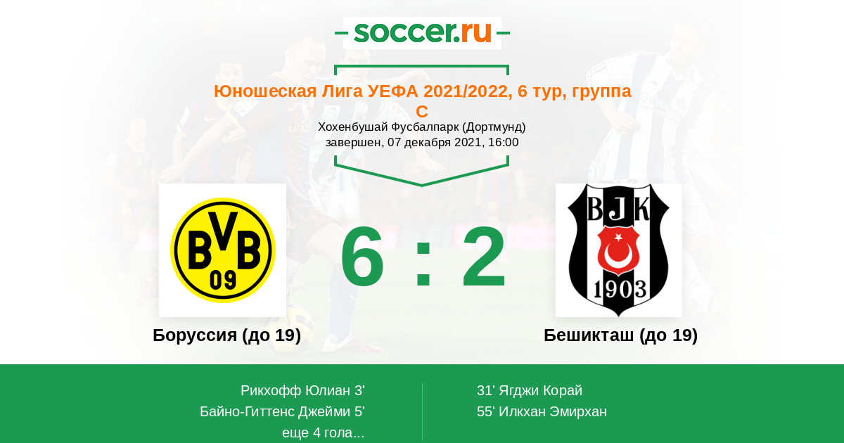 Протокол матча Боруссия (до 19) против Бешикташ (до 19)