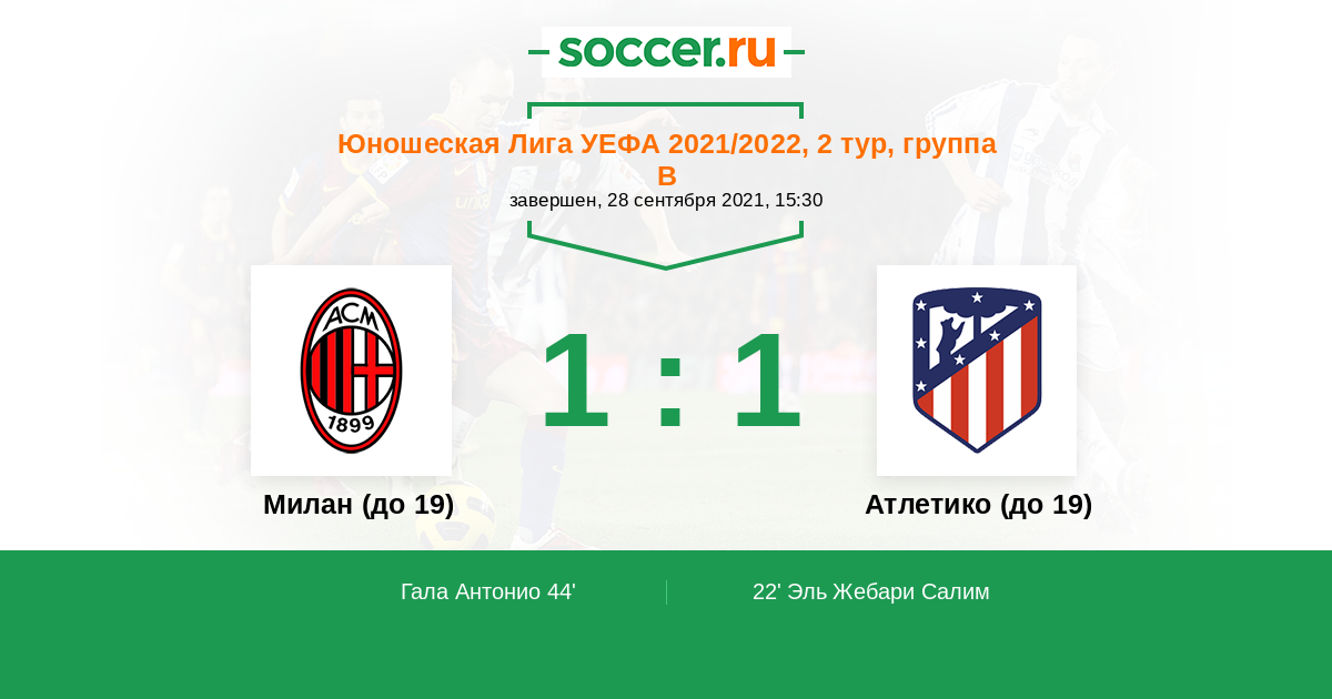 Протокол матча Милан (до 19) против Атлетико (до 19)