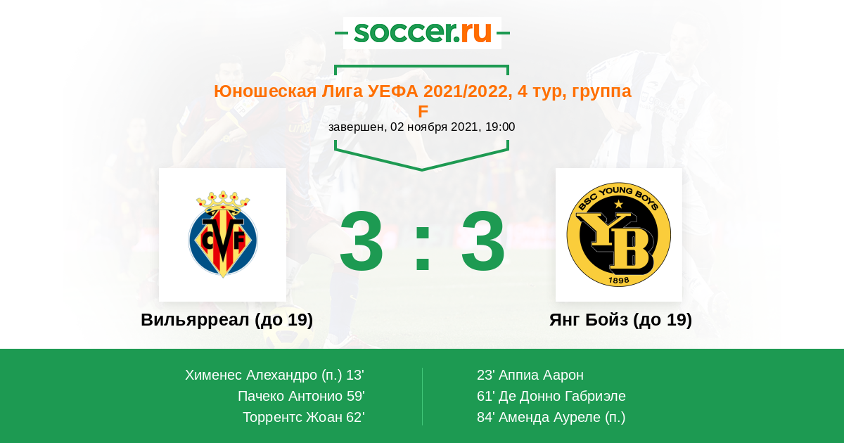 Протокол матча Вильярреал (до 19) против Янг Бойз (до 19)