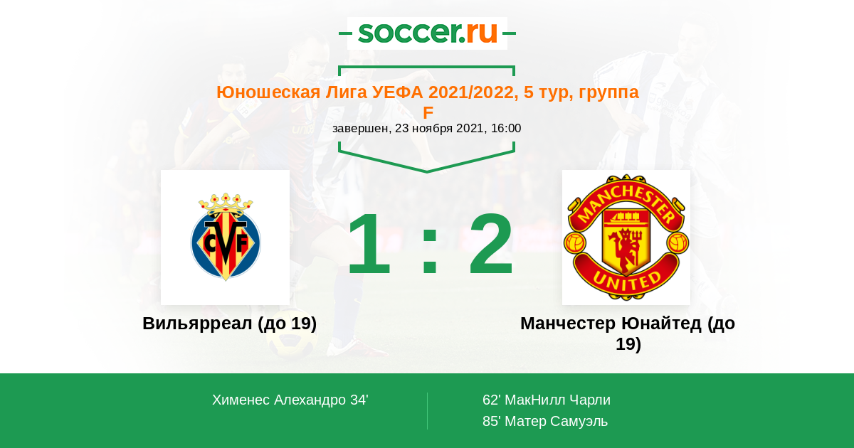 Протокол матча Вильярреал (до 19) против Манчестер Юнайтед (до 19)