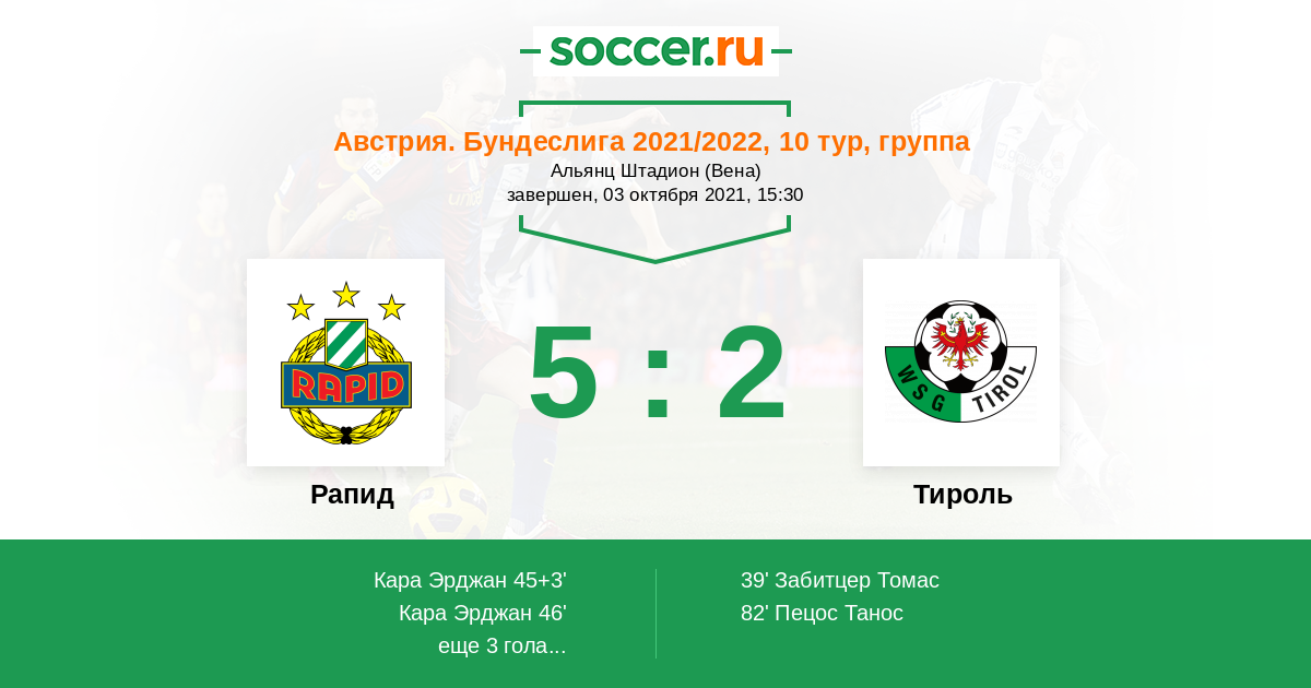 Протокол матча Рапид против Тироль