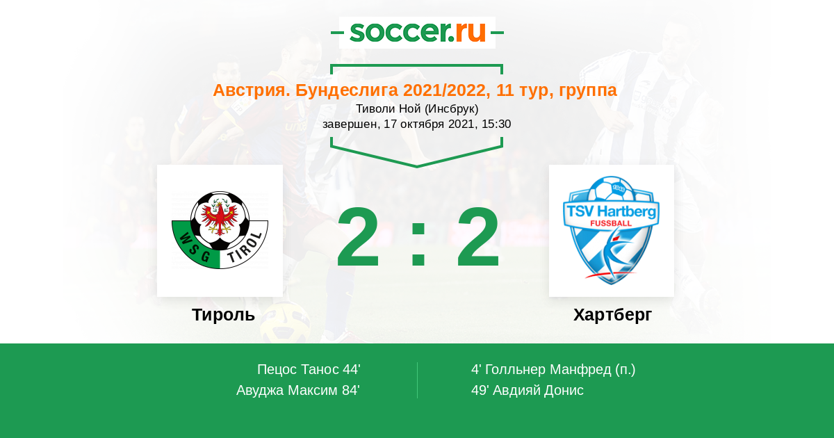 Протокол матча Тироль против Хартберг