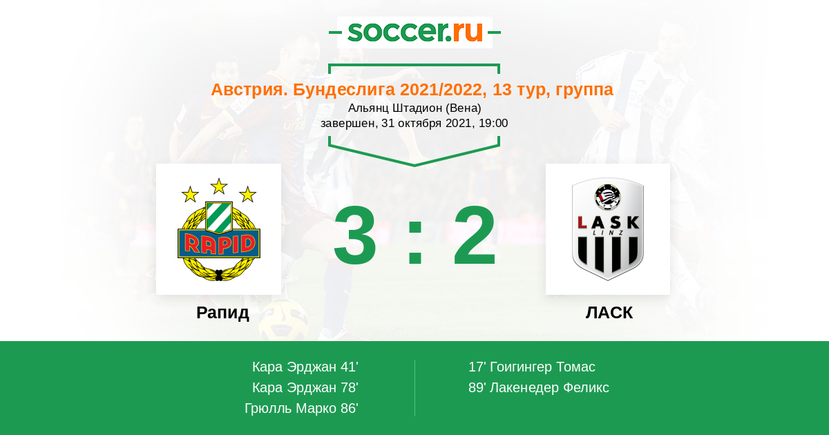 Протокол матча Рапид против ЛАСК