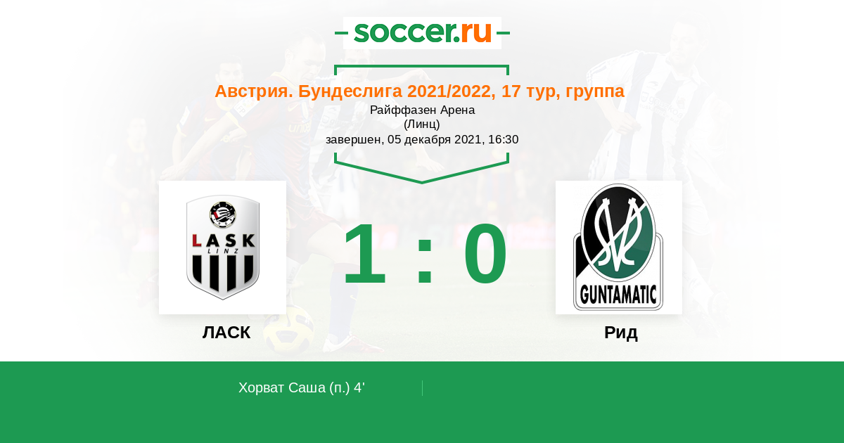 Протокол матча ЛАСК против Рид
