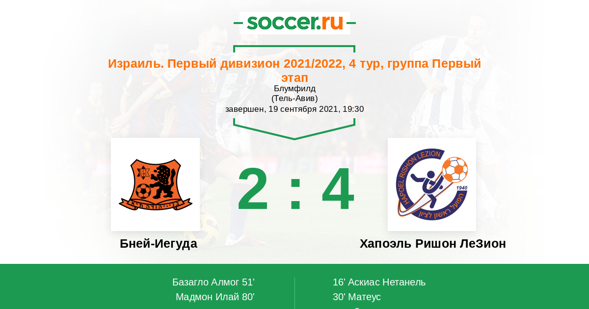 Протокол матча Бней-Иегуда против Хапоэль Ришон ЛеЗион
