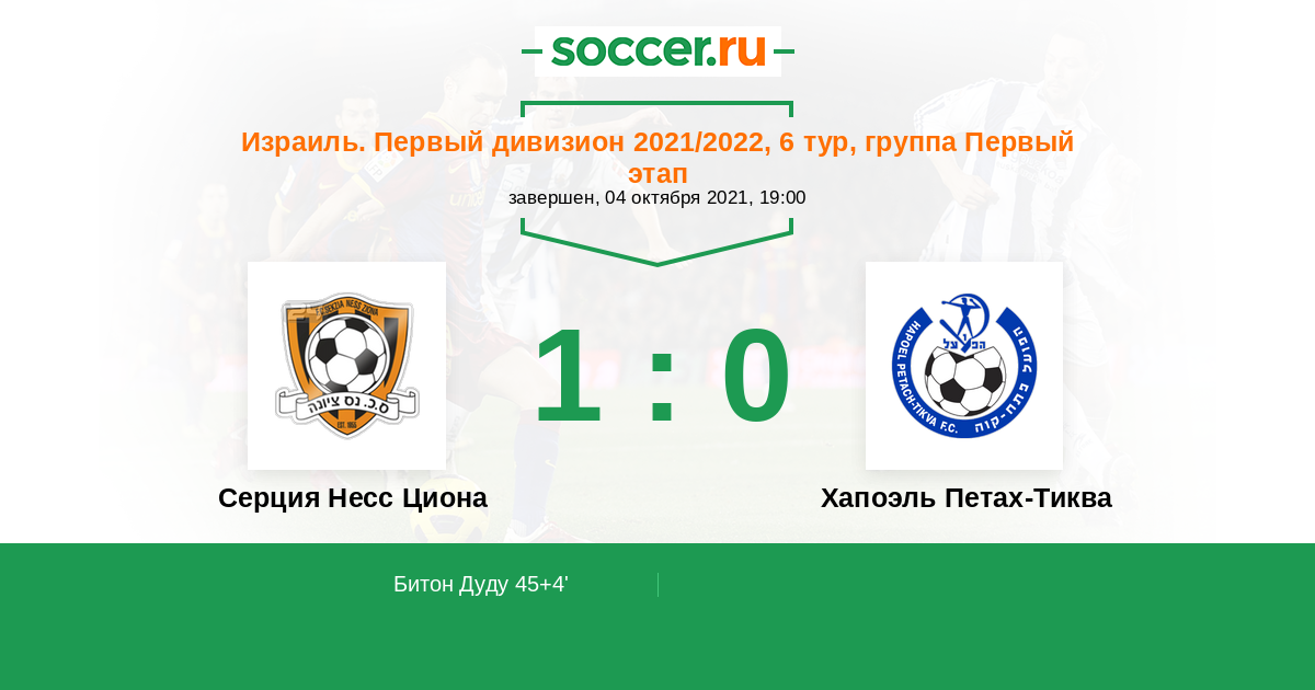 Протокол матча Серция Несс Циона против Хапоэль Петах-Тиква