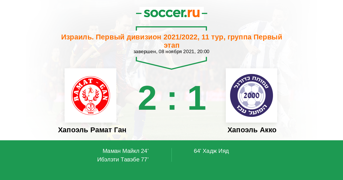 Протокол матча Хапоэль Рамат Ган против Хапоэль Акко
