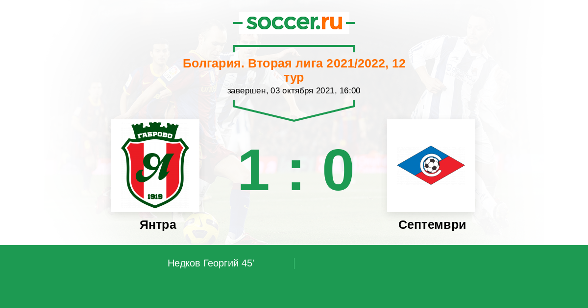 Протокол матча Янтра против Септември