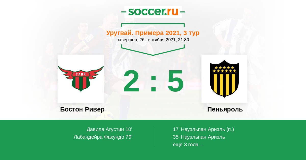 Протокол матча Бостон Ривер против Пеньяроль