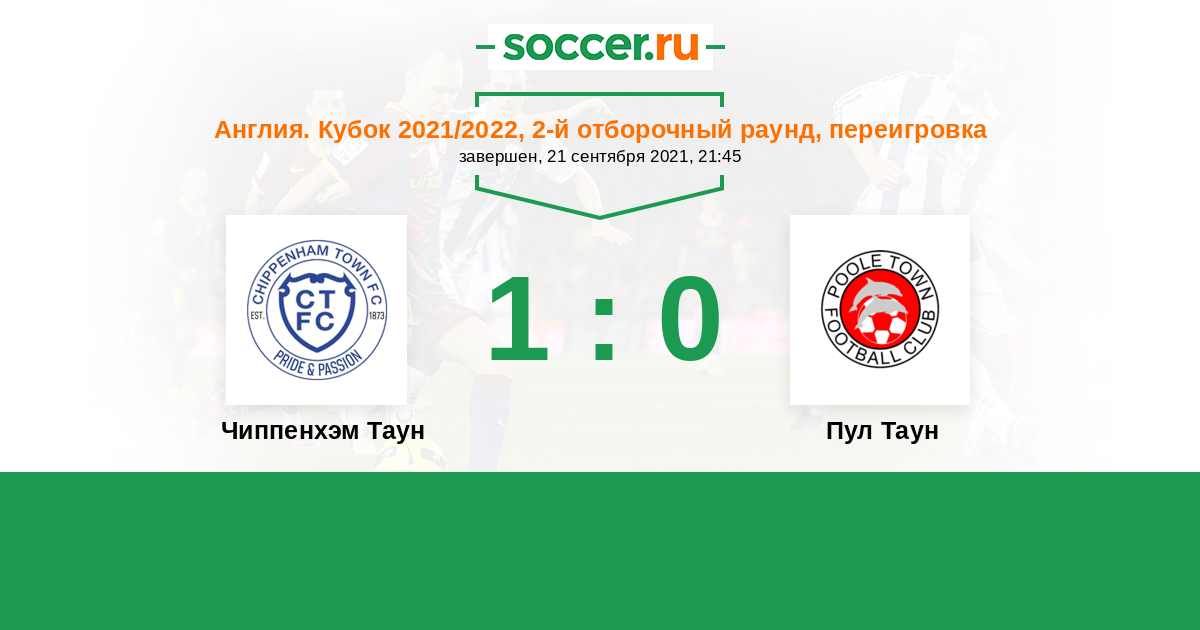 Англия. Кубок 18.09.2021 Пул Таун Логотип футбольный клуб Пул Таун 1:1 Логотип футбольный клуб Чиппенхэм Таун Чиппенхэм Таун