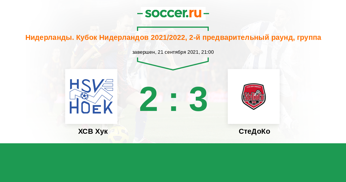 Нидерланды. Топклассе (3-й дивизион) 04.09.2021 ХСВ Хук Логотип футбольный клуб ХСВ Хук (Роттердам ) 1:4 Логотип СтеДоКо (Горнаар) СтеДоКо