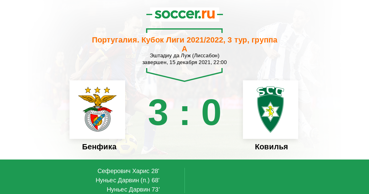 Протокол матча Бенфика против Ковилья