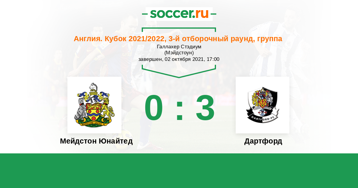 Англия. Трофей Футбольной Ассоциации 26.11.2019 Дартфорд Логотип футбольный клуб Дартфорд 0:1 Логотип Мейдстон Юнайтед Мейдстон Юнайтед