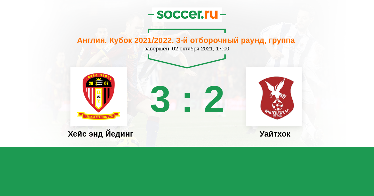 Англия. Кубок 03.09.2025 Уайтхок Логотип футбольный клуб Уайтхок (Брайтон) 3:2 Логотип футбольный клуб Хейс энд Йединг Хейс энд Йединг
