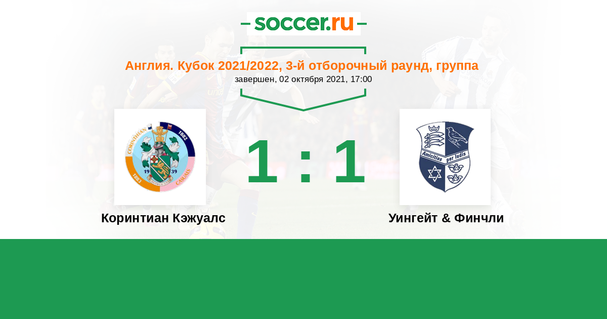 История матча Коринтиан Кэжуалс против Уингейт & Финчли