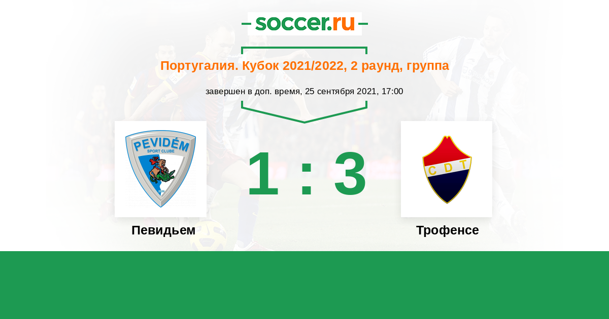 Португалия. Кубок 23.09.2023 Трофенсе Логотип футбольный клуб Трофенсе (Трофа) 0:1 Логотип футбольный клуб Певидьем (Сан-Жоржи-ди-Селью) Певидьем