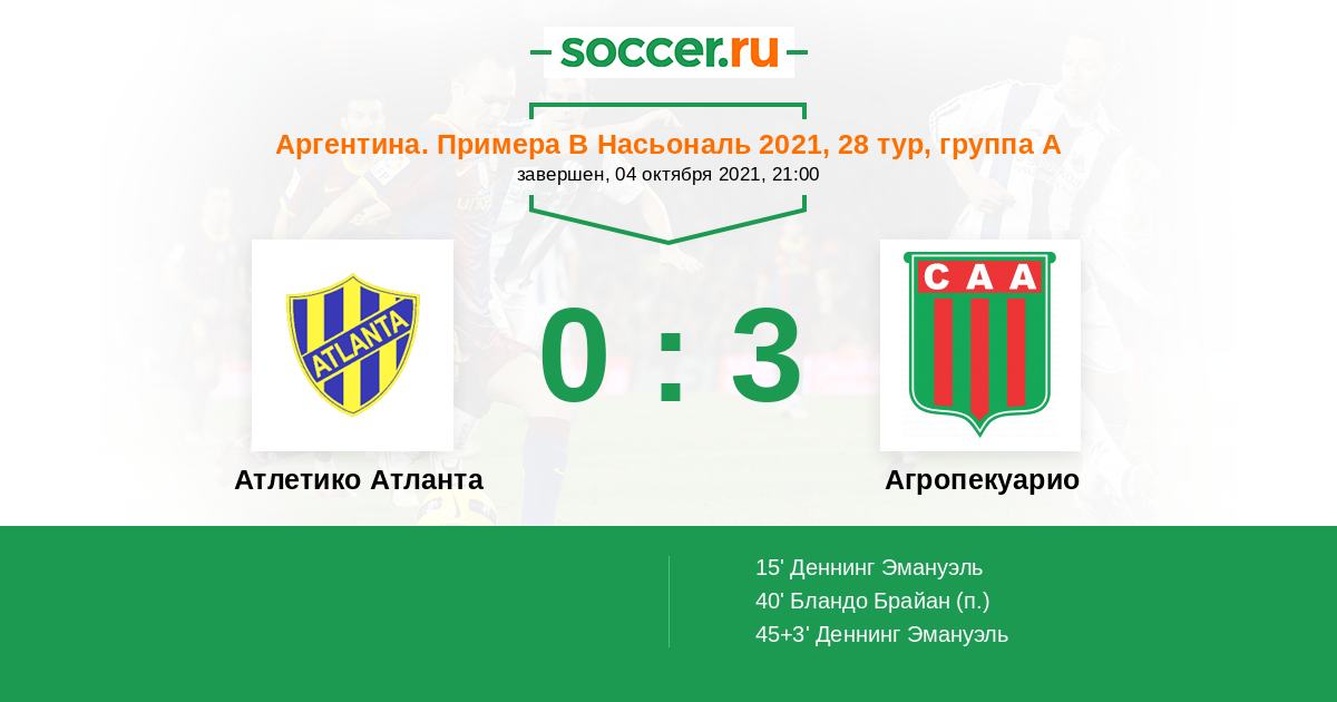Протокол матча Атлетико Атланта против Агропекуарио