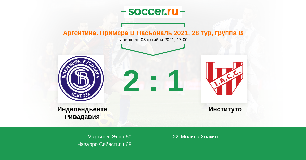 Протокол матча Индепендьенте Ривадавия против Институто