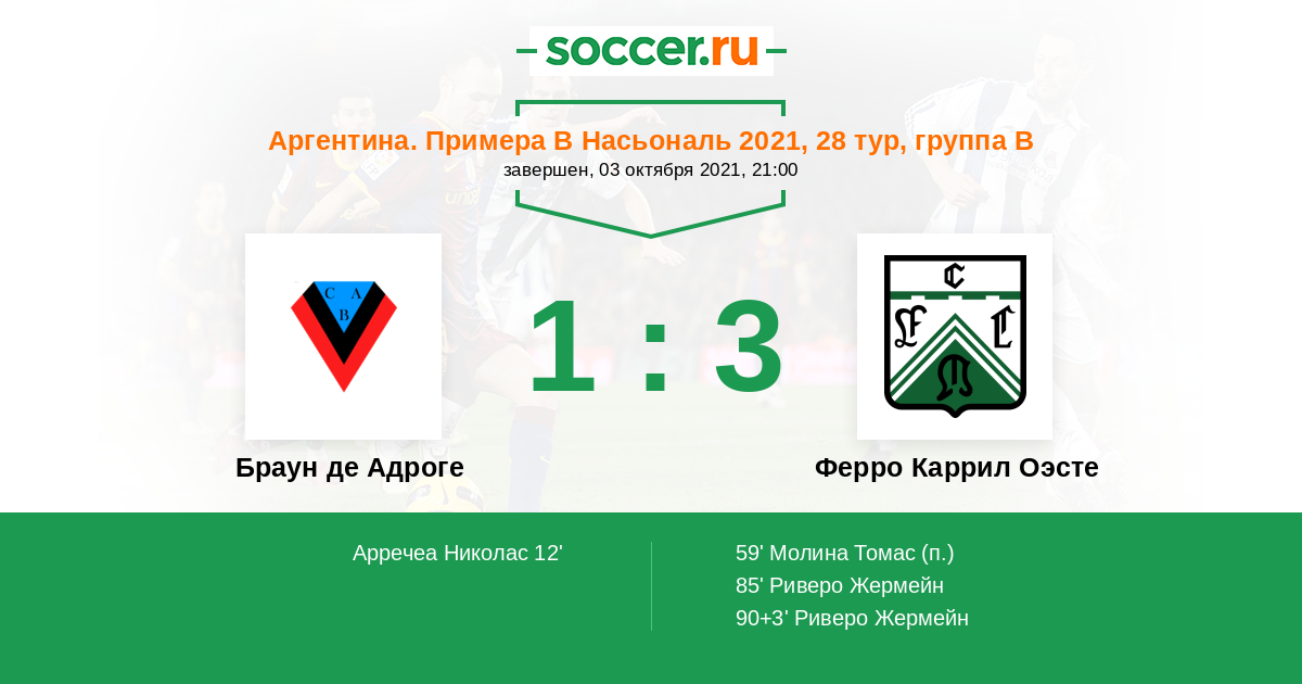Протокол матча Браун де Адроге против Ферро Каррил Оэсте