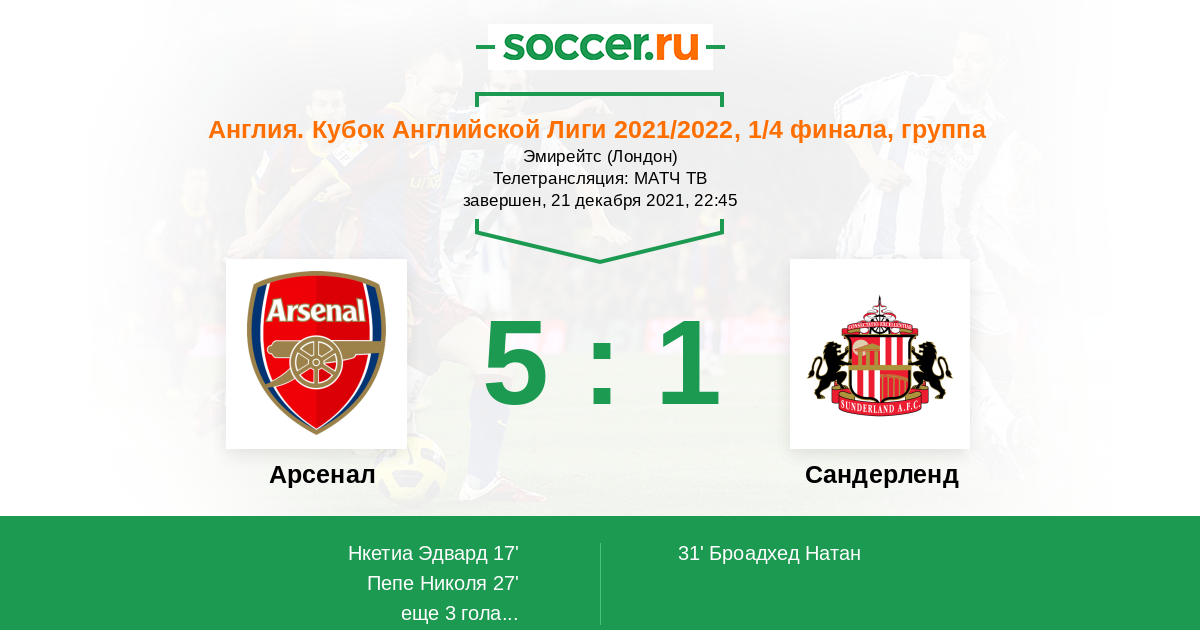 Подопечные Микеля Артеты в отличном состоянии, побеждают третью игру кряду в АПЛ. Кубок английской лиги лишним явно не будет. Учитывая успешность испанского специалиста в кубковых соревнованиях, есть основания полагать, что он отнесётся к выбору состава серьёзно. Думаем, с «Сандерлендом», имеющим массу проблем, «канониры» церемониться не станут.