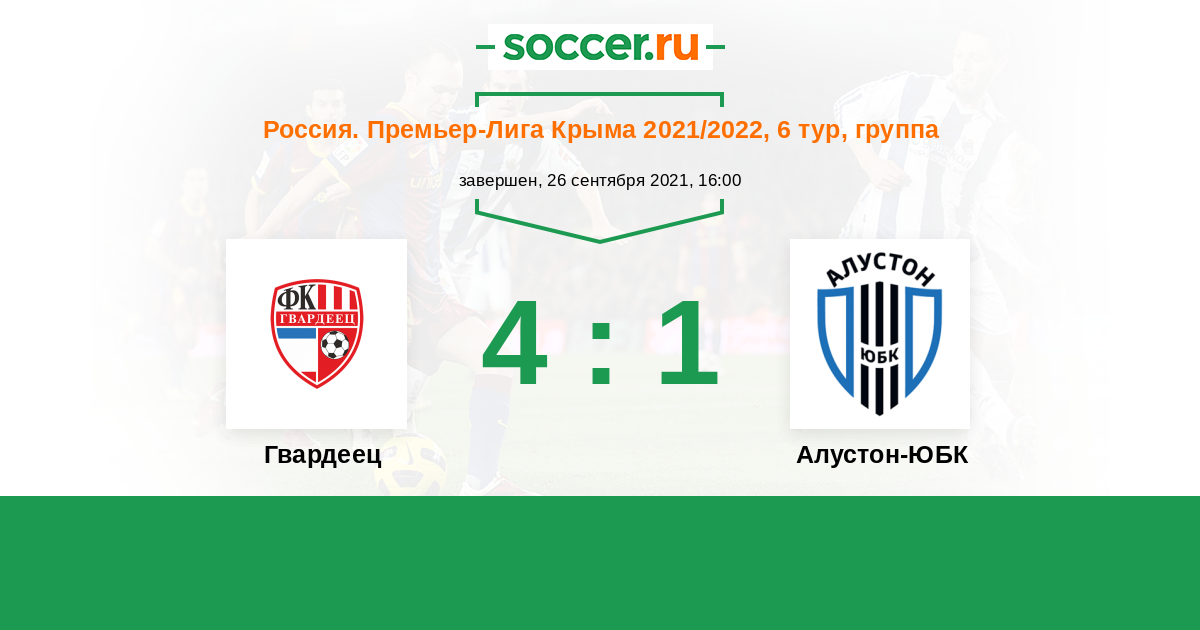 Россия. Премьер-Лига Крыма 20.11.2021 Алустон-ЮБК Логотип футбольный клуб Алустон-ЮБК (Алушта) 0:2 Логотип футбольный клуб Гвардеец (Аграрное) Гвардеец