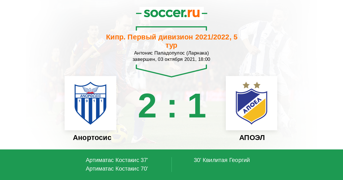 Протокол матча Анортосис против АПОЭЛ