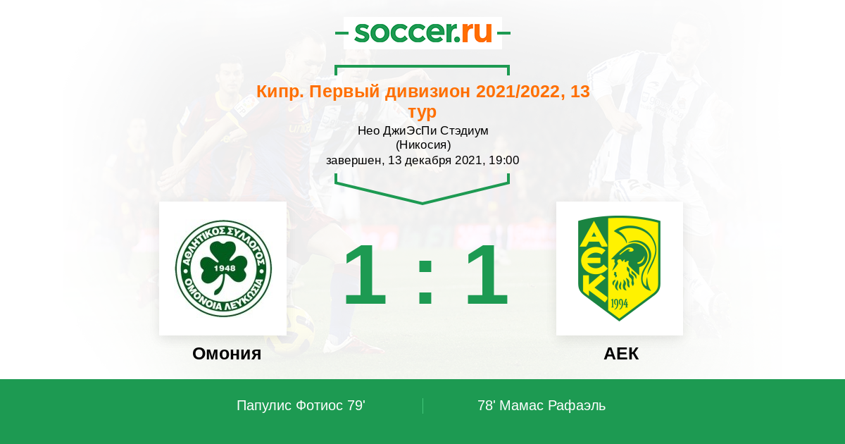 Протокол матча Омония против АЕК