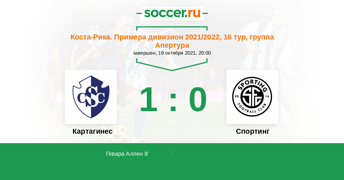 Протокол матча Картахинес против Спортинг Сан-Хосе