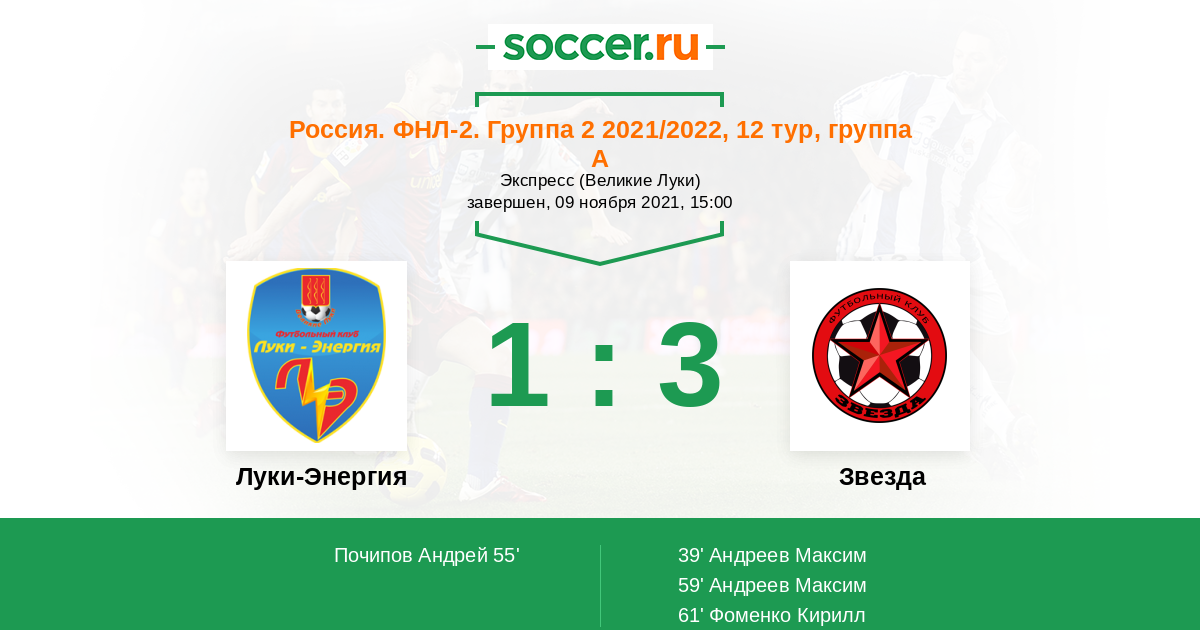 Протокол матча Луки-Энергия против Звезда