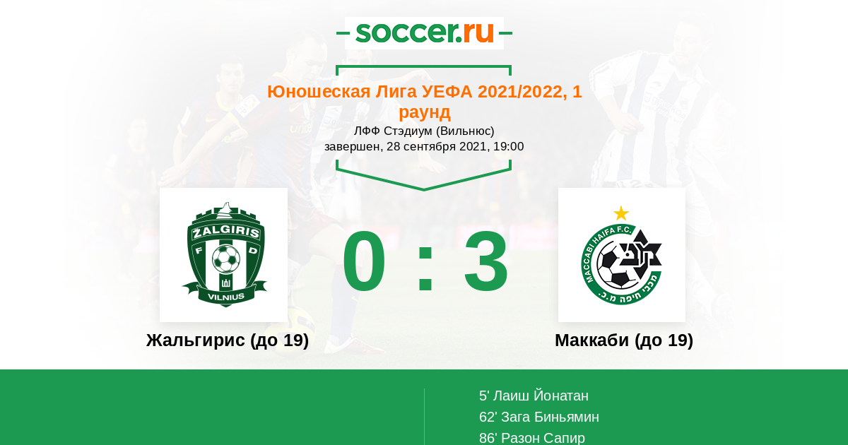 Протокол матча Жальгирис (до 19) против Маккаби (до 19)