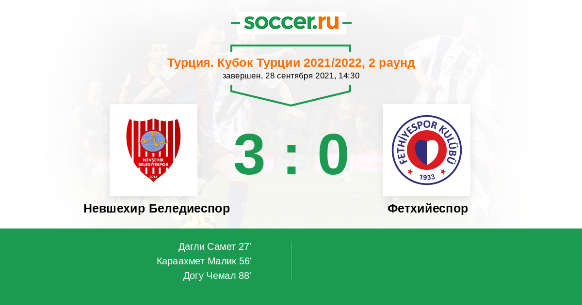 Протокол матча Невшехир Беледиеспор против Фетхийеспор