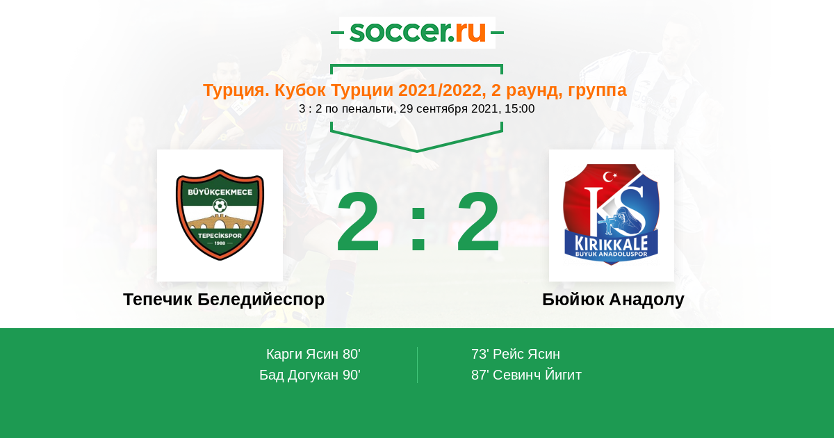Протокол матча Тепечик Беледийеспор против Бюйюк Анадолу