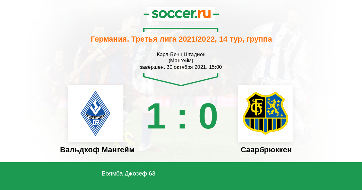 Протокол матча Вальдхоф Мангейм против Саарбрюккен