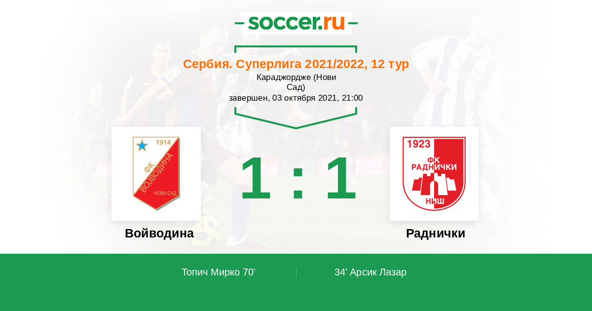 Протокол матча Войводина против Раднички