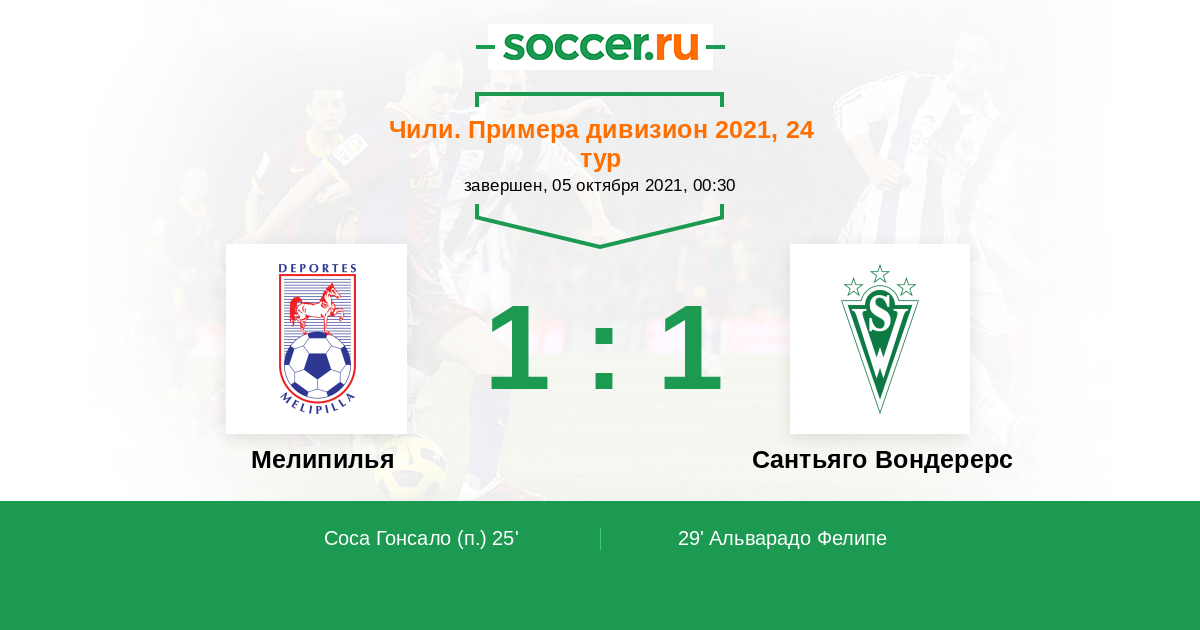 Протокол матча Мелипилья против Сантьяго Вондерерс